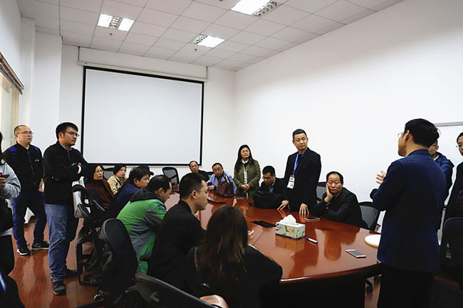 隨后,參觀人員轉赴上海硅酸鹽研究所交流學習。上海硅酸鹽研究所是一個以基礎性研究為先導,以高技術創新和應用發展研究為主體的無機非金屬材料綜合性研究機構。研究所主任王仕維教授向大家展示了透明陶瓷及其光學應用、陶瓷新型成型工藝、纖維增強氧化物陶瓷復合材料等研究方向及成果。參觀結束后,王教授就企業提出的實際問題,與在場企業進行深入的探討,用淺顯易懂的語言為大家答疑解惑。